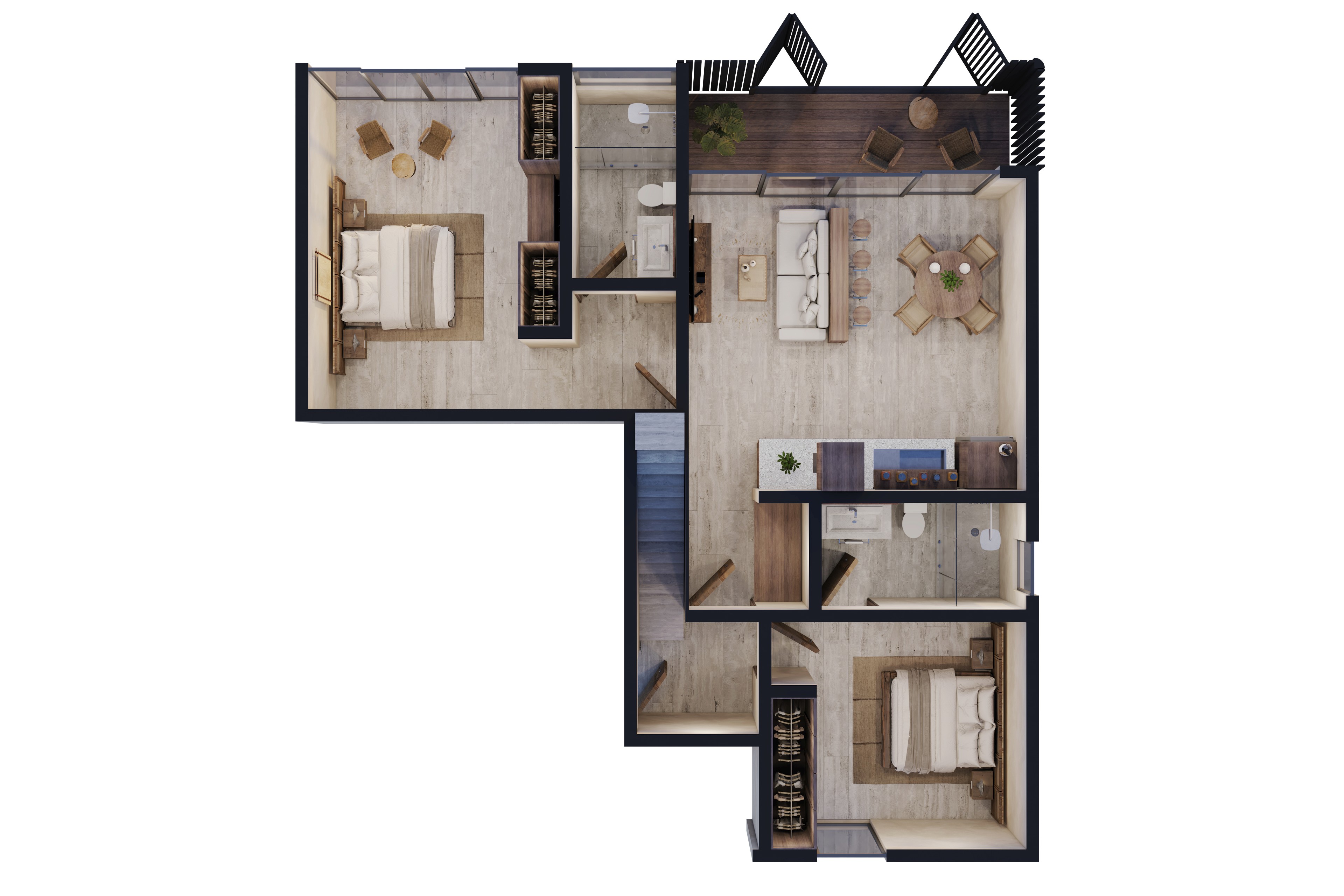 En el nivel superior encontrarás un rooftop privado ideal para disfrutar con familia y amigos, con opción para integrar jacuzzi, área lounge y asador, acompañado de vistas privilegiadas del entorno natural.